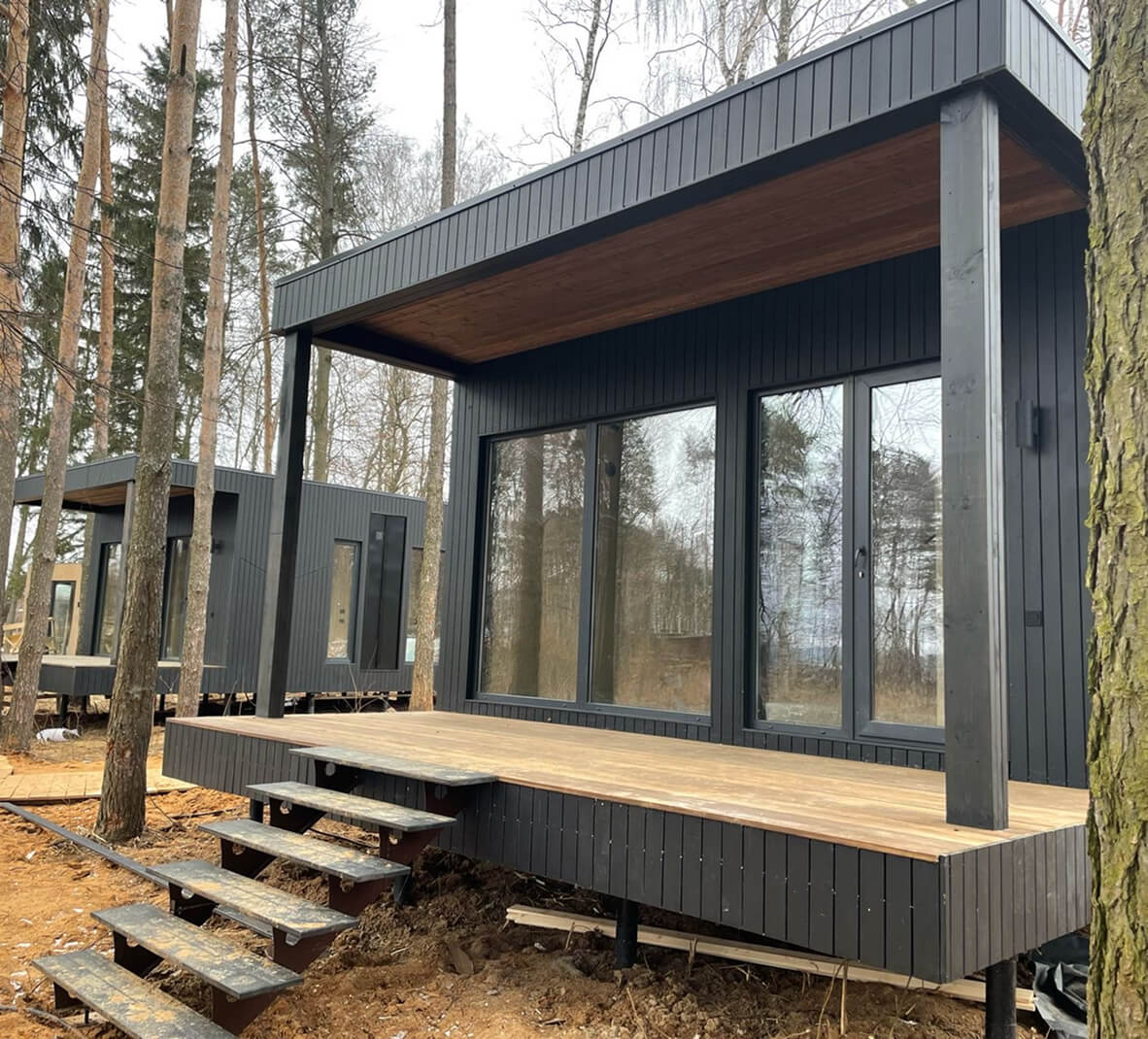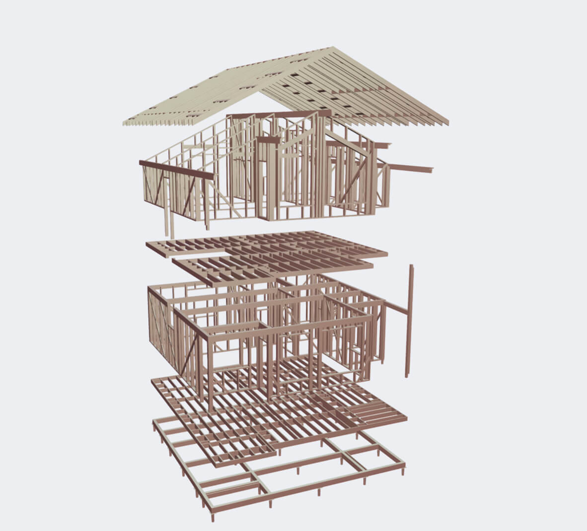- За счет высокоточного заводского изготовления элементов каркаса и технологичной обработки огнебиозащитными составами, домокомплект имеет высокий класс надежности (по сравнению с зарезкой каркаса на строительной площадке)